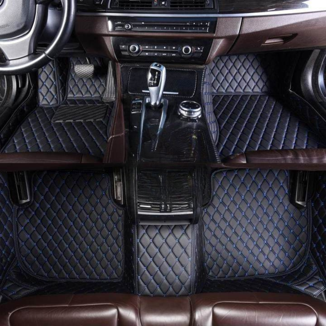 Disse måtter beskytter effektivt mod spild og snavs. Deres omhyggelige design, fremhævet af kontrastsyninger, tilføjer et strejf af elegance til indersiden af din bil. Praktiske at vedligeholde, de er perfekte til daglig brug.