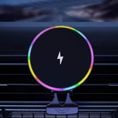 Soporte de teléfono para coche – Carga inalámbrica y luz LED